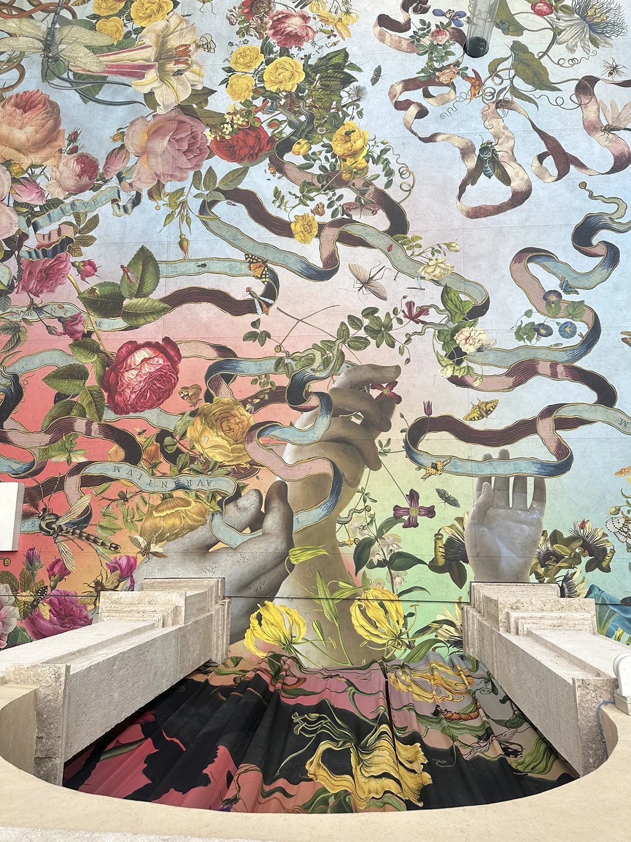 Temple of Flowers / Tempio di Fiori, Austin Young, 2025, commissioned by Chiostro del Bramante for the exhibition “FLOWERS” February 14, 2025 through September, 2026 at Chiostro del Bramante, Rome. Video: Giovanni De Angelis