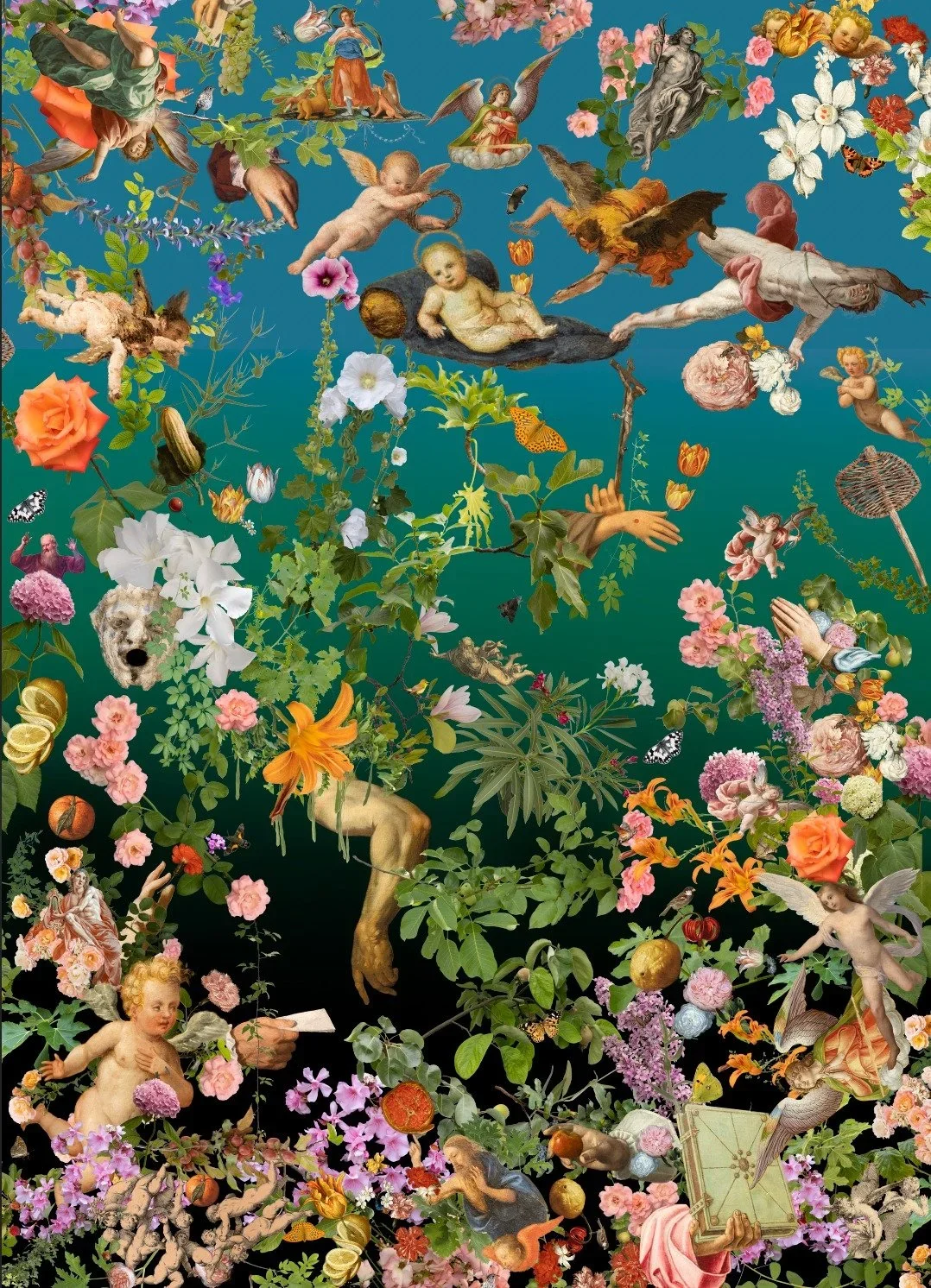 Created for Accademia Carrara, Sacred Conversations is an immersive artwork installation for the stairwell that connects the galleries of the historic museum. The artwork is sourced from hundreds of original photographs taken by the artists that include details from paintings, drawing, and etchings from the permanent collection. Along with documentation from the streets, parks, and piazzas of the city of Bergamo that include a variety of local fruits, flowers, birds, religious icons, and more. The title of the artwork ‘Sacred Conversations’ invokes a message about how the past relates to the present and often informs the future. And also, how sometimes in our lives, we travel from a place of darkness into light.
